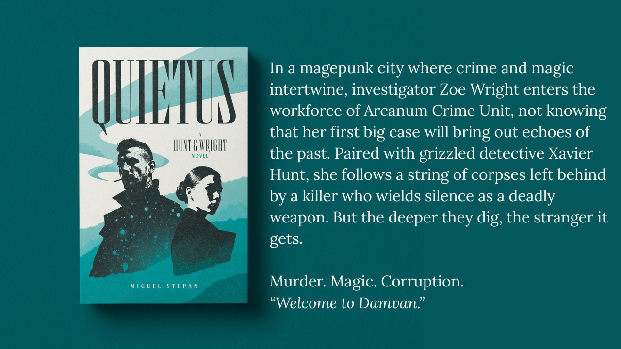 I’m sure you loved The Spider as much as I did, so I brought you a sample of my own supply. It’s a darker, fantastical mystery called Quietus, and it scratches that same itch.